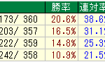 またここから更にテクニカル6で調べてみると、波乱傾向の強いパターン1と2での成績が悪くて狙いはパターン4~6となっています。
