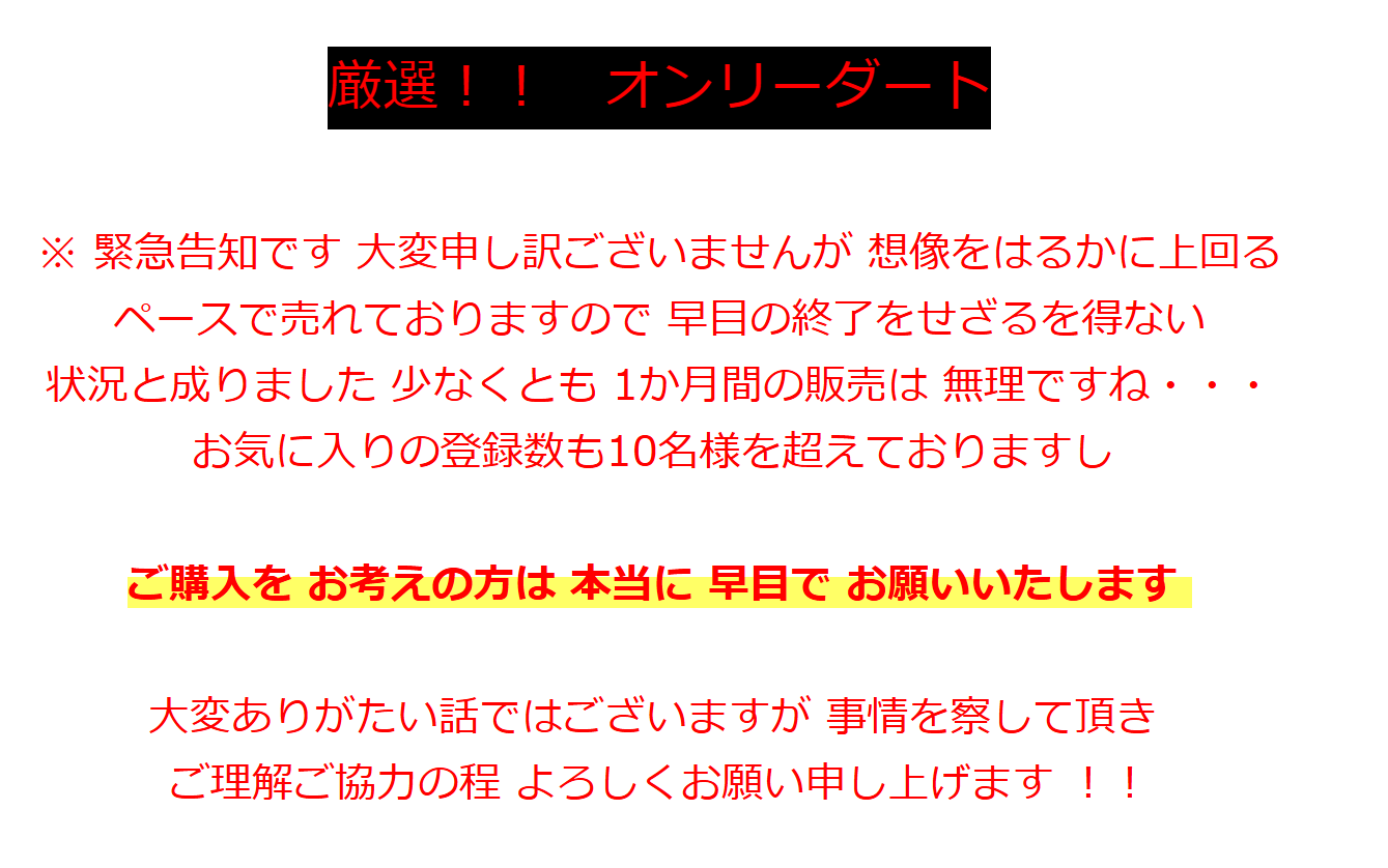 そうすると、来週中の販売終了になってしまう可能性も高くなりますねw
