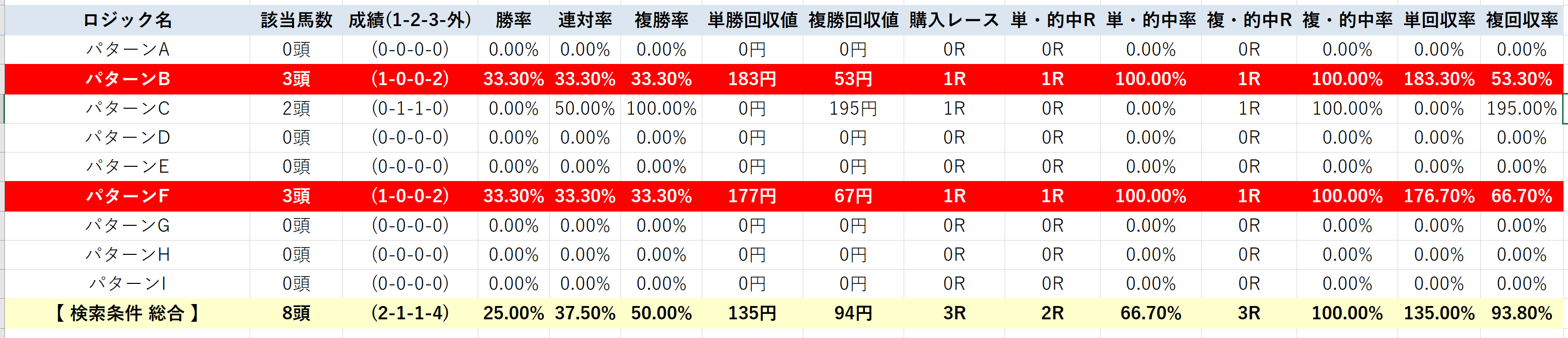 そして14日(土)のレースパターン別成績が以下のようになっていました。