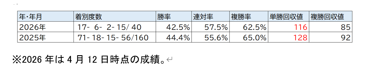 こちらが、コンピの聖杯の成績(2025年~2026年4月19日)です。